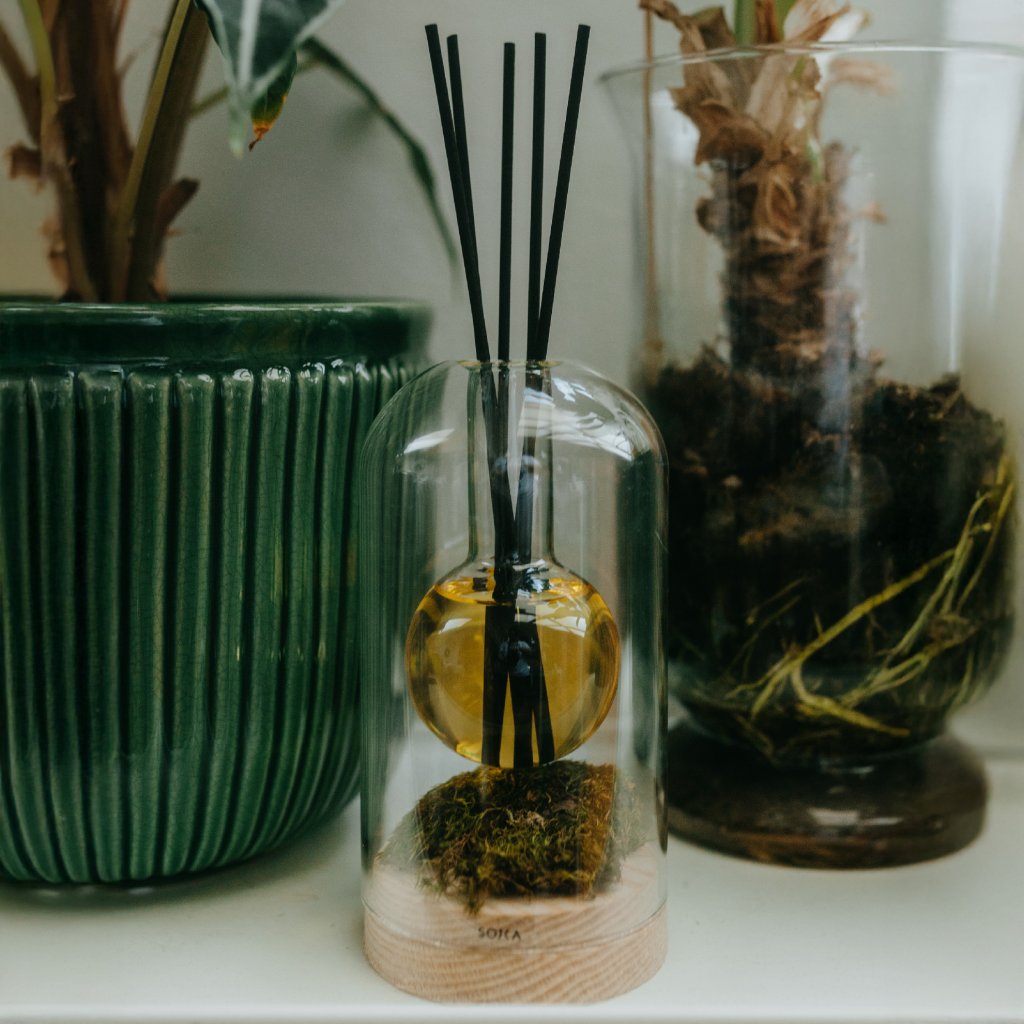 Tip: Mechová dekorace je vyjímatelná – můžete ji kdykoli vyměnit podle ročního období či nálady. Ať už zvolíte květy, větvičky nebo sezónní dekorace, váš difuzér se promění v nadčasový prvek interiéru, který si snadno přizpůsobíte.