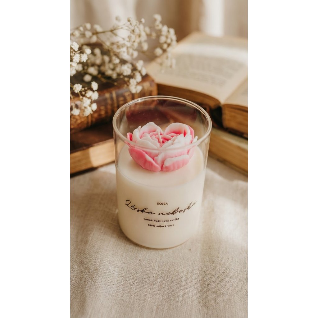 LÁSKA NEBESKÁ - vonná květinová svíčka s víčkem