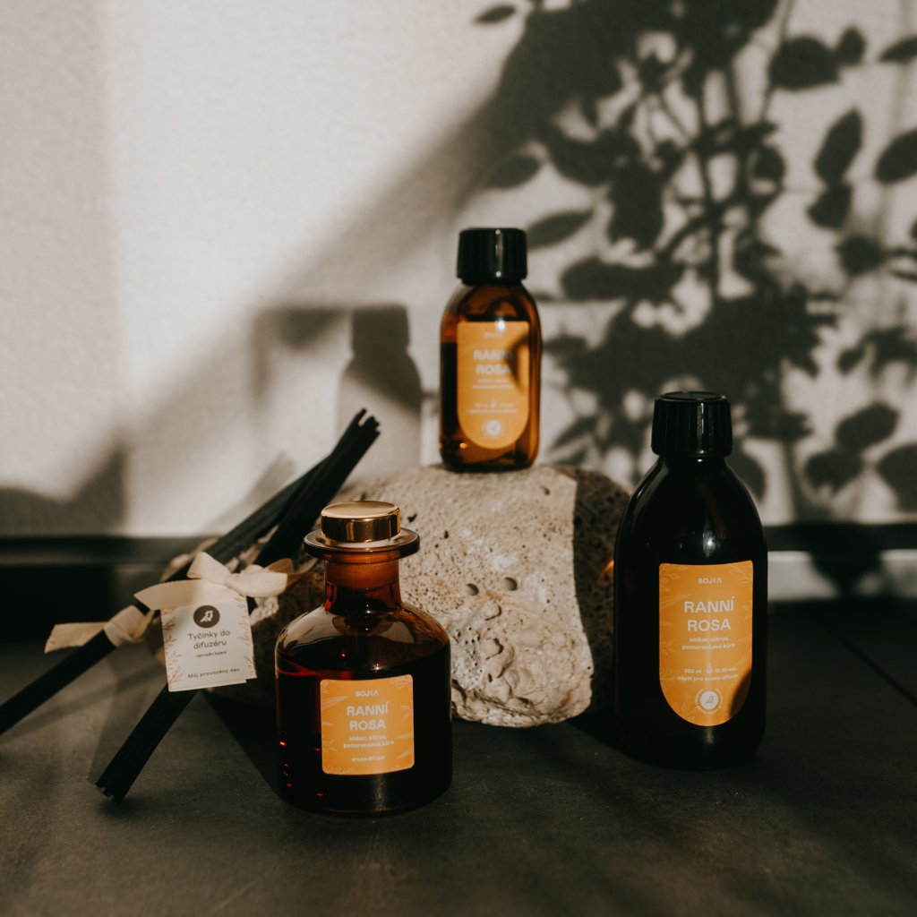 Dostupná ve dvou velikostech – 100 ml (výdrž až 8 měsíců) a 250 ml (výdrž až 20 měsíců) – ideální pro malé i velké prostory. V kombinaci s kvalitními černými difuzními tyčinkami SOJKA zajistí stálou intenzitu vůně bez nutnosti časté výměny.