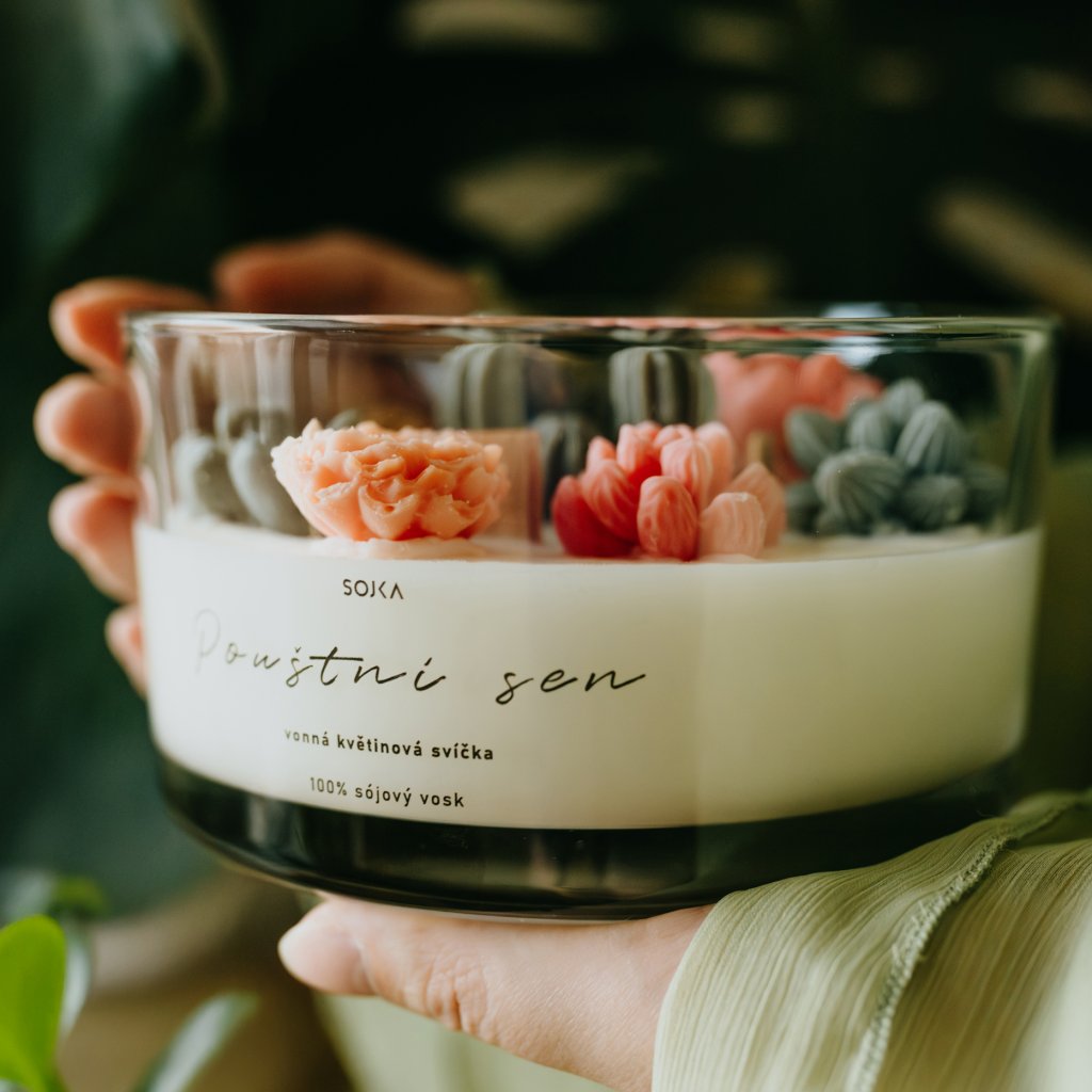 Dopřejte si jedinečný kousek, který zkrášlí váš interiér a zároveň provoní váš domov. Naše ručně vyráběné designové svíčky ze 100% přírodního sójového vosku jsou nejen krásnou bytovou dekorací, ale i plně funkční svíčkou s benefity přírodního vosku. Každý detail je pečlivě modelován z vosku, aby svíčka vypadala stejně dokonale jako na fotkách a vy obdržíte dokonalou svíčku.