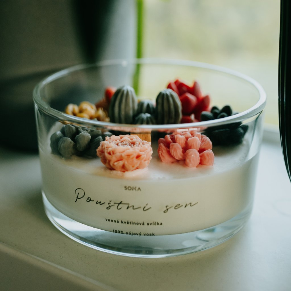 POUŠTNÍ SEN - Květinová svíčka s kaktusy (M)