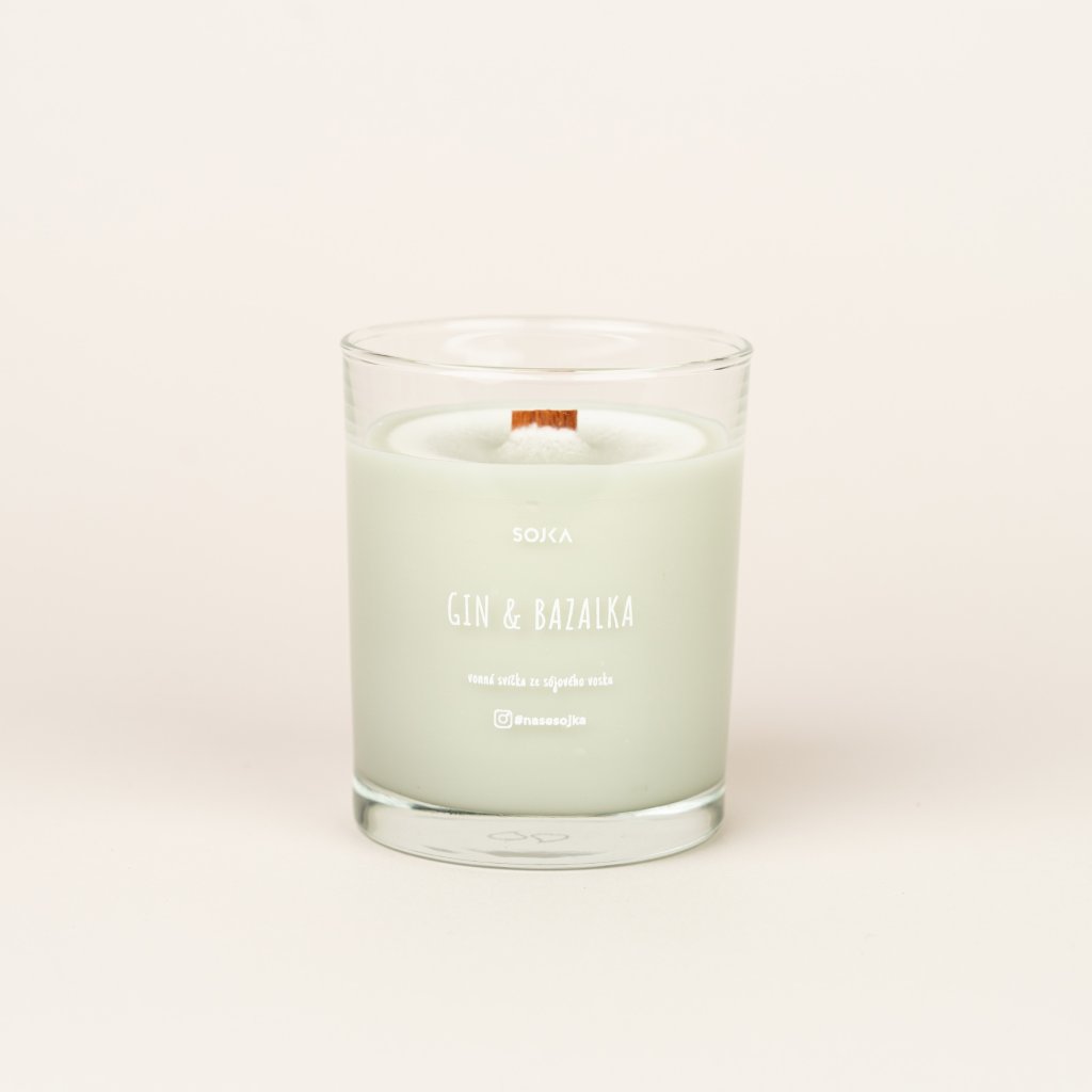 GIN & BAZALKA - Sójová vonná svíčka ve whisky sklenici (170 g)