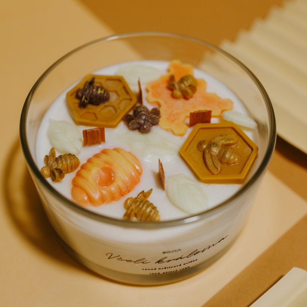 VČELÍ KRÁLOVNA - Designová svíčka s včelkami