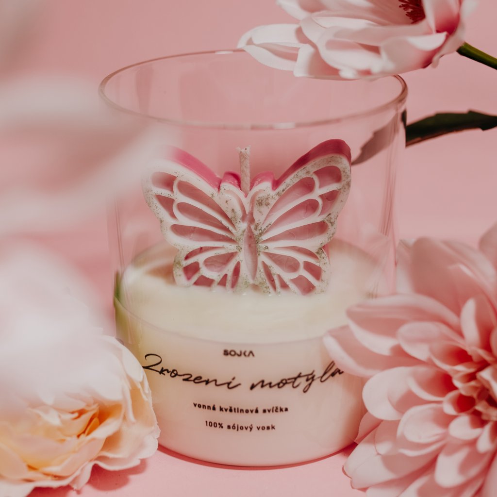 ZROZENÍ MOTÝLA - vonná designová svíčka s víčkem